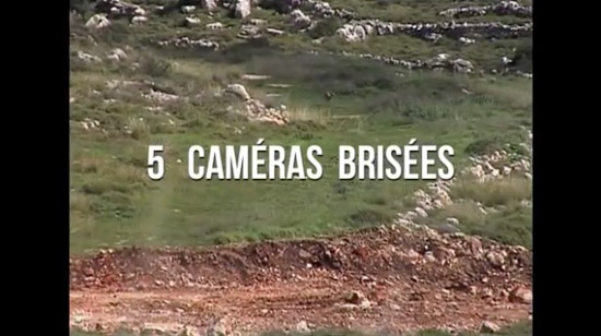 Pourtant, pour achever ce documentaire, le réalisateur a joué avec sa vie. Ses 5 caméras, utilisées tour à tour au fil des ans entre 2004 et 2011, ont subi le même sort ou presque : toutes brisées, elles ont donné à la fois l’idée du titre du film (Five broken Cameras) et le fil rouge de ce documentaire qui a reçu de nombreux prix.