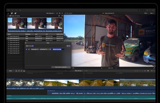 D'autre part, et c'est là une grande différence avec Adobe : Apple laissera la faculté d'acheter certaines de ses applications créatives en version "Standalone" (seule, sans abonnement). Assez maligne cependant, la firme de Cupertino laissera à la formule sur abonnement un privilège dont la version seule ne profitera pas : le dopage à l'Intelligence Artificielle ! L'I.A. intégrera en effet toutes les applications Apple. Une telle IA permettra par exemple sur FCPX d'analyser les séquences pour travailler finement un montage en fonction d'un rythme musical ou d'identifier des moments précis au sein d'un projet vidéo. Il suffira de saisir quelques mots pour retrouver un extrait déterminé. Ou encore de demander à basculer en mode vertical pour diffuser sa vidéo Open Gate sur les réseaux sociaux...