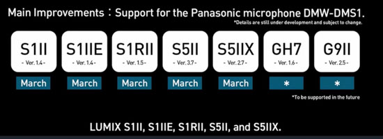Parallèlement, des mises à jour bénéficient aux LUMIX S1RII (compatibilité avec le nouveau DMW-DMS1), LUMIX S9 et objectifs LUMIX S (stabilité de fonctionnement améliorée), Application smartphone LUMIX Flow et lab (diverses fonctionnalités).