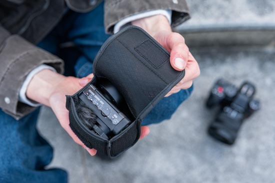 Une pochette permet un rangement et un transport pratiques, avec la bonnette montée.