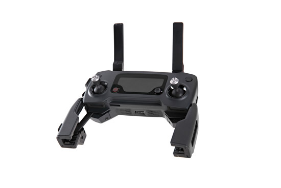 Comme le drone, la radiocommande avec écran LCD intégré, est elle-même compacte. Le nouvel algorithme de gestion de la bande passante rendrait le nouveau système de transmission vidéo (nommé OcuSync) plus robuste dans les environnements très chargés en fréquences.