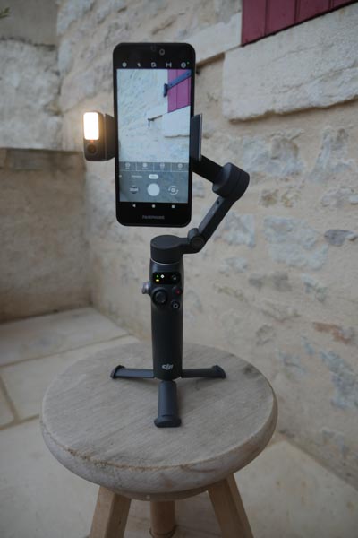 - D'une part, l'OM8 a une faculté d'effectuer - grâce à un axe panoramique - une rotation libre horizontale illimitée à 360° (!). Selon DJI, cet apport et cette souplesse profitent surtout aux prises de vues de réunions entre amis, camping en plein air, ou scènes de festivals musicaux. La rotation à 360° s'effectue très simplement par déplacement du Joystick dans un sens ou dans l'autre. Il est préférable de le faire depuis un support stable (table...) mais ce n'est pas obligatoire.