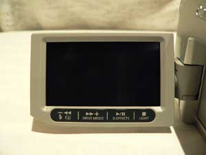 Question points faibles, la petite taille du DC21 a contraint le fabricant à encastrer la batterie derrière l'écran. Pas étonnant que son autonomie plafonne à 40-45 minutes environ. Et elle ne peut pas être remplacée par une batterie de plus grande capacité ! Le viseur est complètement fixe. Bien sûr, pas d'entrée micro ni griffe porte-accessoires. Et la carte mémoire, une mini-SD, n'est pas fournie. L'optique, qui ouvre à 1,8 (ouverture classique) et de diamètre 27 mm, ne semble pas avoir un pas de vis qui puisse permettre l'adjonction d'un grand-angle. Autre écueil, on peut toujours percevoir un léger trou sonore entre chaque séquence, audible selon le lecteur choisi. C'est le format MPEG-2 qui en est à l'origine. |
