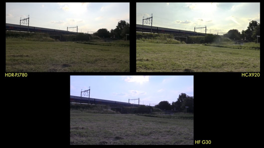 Au télé, l'équivalent 24x36 est de 576 mm, c'est bien plus puissant que les 368 mm du HC-X920 (zoom x12) et encore davantage que le Sony PJ780 (zoom 10x, soit 260 mm). inutile de dire que cette plage de focale est un des gros points forts du Canon car elle offre une grande variété de prises de vues. Du coup, le HFG30 ne recoure pas au subterfuge de ses rivaux, contraints d'utiliser un mode iZoom, multipliant la focale par deux au prix d'une légère perte qualitative.