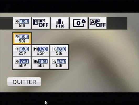 Pas de mode 1080/50p, le débit dépasserait la limite du AVCHD actuel. En cas de besoin, il est possible de "gonfler" le 720/50p jusqu'à 1080 lignes lors du montage, au prix d'une perte de résolution.