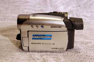 Sur le corps du camescope, on ne retrouve pas la prise DV mais le connecteur audio/vidéo analogique a été doublé, ce qui permet de visualiser ses images sur sa TV, même si on n'a pas emporté la base avec soi. Dans la même logique, la prise d'alimentation secteur (DC In) est aussi présente sur le camescope. Pas de prise Micro (ni prise casque) en revanche nulle part, ni la possibilité de raccorder un micro optionnel Sony puisqu'il n'existe aucune griffe sur ce modèle.
