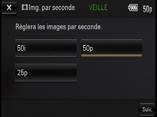 D'autre part, quand on passe en 50p et qu'on revient au 50i, ce dernier se positionne par défaut sur la qualité à 9 Mbit/s en 1440 x 1080 (!) et non dans la qualité la meilleure ni dans celle dans laquelle on avait filmé auparavant.