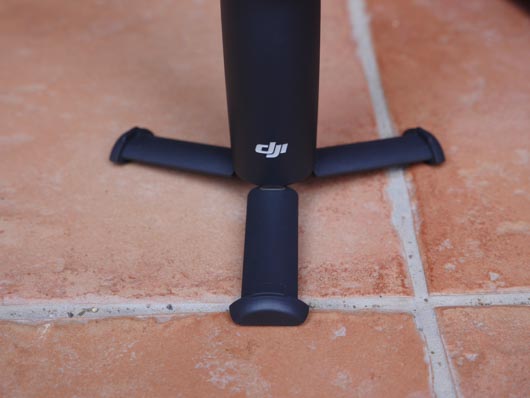 Autre petite amélioration en apparence, le Gimbal dispose d'un trépied intégré (en plastique) dépliable qui évite que cet accessoire n'encombre inutilement son sac photo ou sa poche de grande veste. Écologiquement, c'est probablement aussi préférable, ça limite les accessoires. Seul reproche, sa conception en plastique paraît fragile quand on le sort / replie, et il a du "jeu" quand on le tient, DJI a dû étudier la question mais il faudra voir à l'usage. Une certitude : j'ai fait tomber le Gimbal (juste de sa hauteur), car sa légèreté favorise son déséquilibre si on fait un geste malencontreux. |