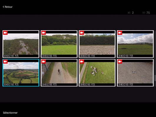 Les seuls moyens de relire les vidéos enregistrées sont l'application DJI GO si la carte est dans le drone, ou en mettant la carte micro SDHC dans un lecteur de carte connecté à un ordinateur. Dans le premier cas, l'utilisation d'une tablette tactile améliore considérablement la visualisation des rushs, si on compare aux écrans des caméscopes ou des caméras de sport.