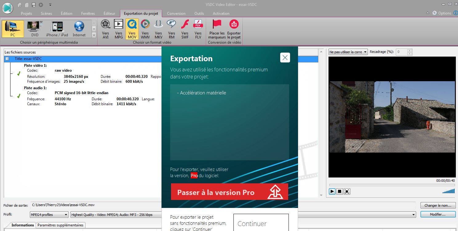 Hormis l'export qui est objectivement ralenti et la stabilisation manquante, la version gratuite de VSDC est peu restrictive par rapport à un logiciel payant. Paradoxe, la version payante est donc très moyennement intéressante d'autant qu'elle équivaut à un abonnement annuel, certes peu onéreux (environ 20 euros). Mais c'est du côté de l'ergonomie et de la simplicité d'utilisation que le logiciel gratuit pêche le plus finalement, les logiciels payant font un gros travail pour améliorer leur interface graphique pur qu'elle soit le plus intuitive possible, ce qui n'est pas le cas de VSDC. Enfin, l'aide en ligne n'est pas intégralement traduite en français en VSD. Reconnaissons malgré tout, que pour un logiciel gratuit, VSDC est extrêmement complet et continue apparemment d'évoluer.