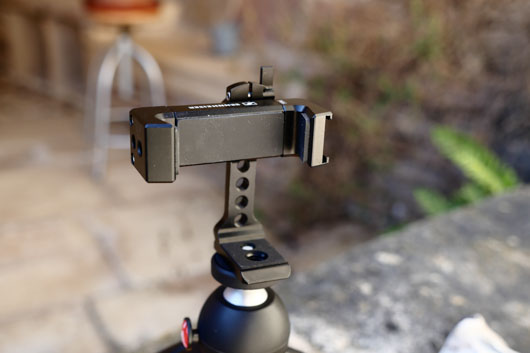 Pour 30 euros de plus, le MKE 400 s'adapte à un smartphone sans la moindre cage ! Il s'agit du « MKE 400 Mobile Kit » qui propose un système de pince pour smartphone redoutablement efficace. La pince à elle seule remplace un système de cage qui aurait pu atteindre les 100 euros et permet d'économiser cette somme en conséquence. Le kit est également fourni avec un mini-trépied Manfrotto PIXI Mini (si on souhaite l'installer) |
