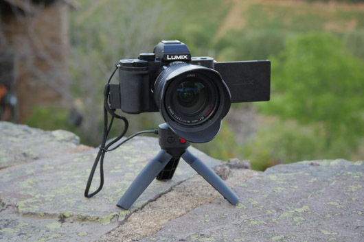 La priorité donnée aux Vloggers se reflète à travers la légèreté du boîtier deux fois plus marquée qu'un GH5 sans optique. La patte du Vlogging, c'est aussi l'intégration d'un stabilisateur 5 axes (4 axes en 4K) pour compenser les mouvements en marchant, et d'un mode “Selfie Video” qui permet à l'avant-plan (vous...), comme à l’arrière-plan (le sujet), d'être théoriquement net et bien exposé. Précisons que l'AF est à détection de contraste.