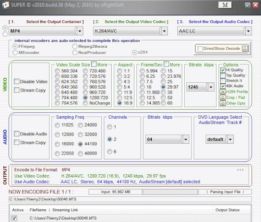 Bonne nouvelle néanmoins : retenez que quelques logiciels savent convertir (et du coup, lire) l'AVCHD Lite, qu'il s'agisse du célèbre freeware couteau-suisse de la vidéo, Super v.2010 (Build 38) d'eRightSoft ou encore du freeware moins connu, Free HD Converter , de Koyote Software, en version 1.7 actuellement. Il existe aussi un logiciel payant (29 dollars), compatible Windows ou Mac, qui convertit globalement vos fichiers AVCHD dans toutes les normes : il s'agit de MTS/M2TS Converter de la société PAVTUBE.
