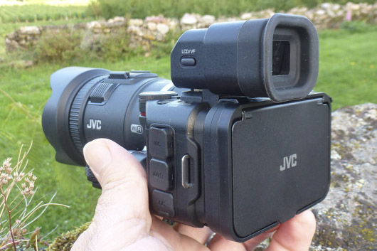 JVC cherche à prouver son savoir-faire car en matière de camescopes, l'inventeur du VHS a perdu le leadership d'autrefois, détenu loin devant par Sony. Raisonnement probable de JVC : comme tous les appareils photo intègrent désormais de la vidéo et font de l'ombre au camescope, autant chercher à reprendre cette idée à l'envers : concevoir un camescope qui évoque la photo, un peu à la façon chez Sony de la sa série NEX (VG10, VG20, VG30, VG900. Agrémentez cette sauce avec du Wi-Fi, un viseur amovible, et des capacités évoluées (du moins sur le papier) en matière de ralentis et d'accélérés.