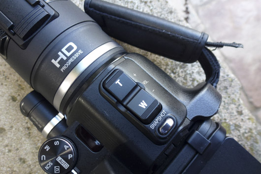 Côté prise en mains toujours, la commande de zoom est agréable, pouvant aller à vitesse rapide ou très lente. On recense en plus une très rare mémorisation de la position du zoom, une fois le camescope éteint. A l'usage, la vitesse lente est pourtant difficile à maintenir sans à-coups et pourtant, je peux vous assurer que ce n'est pas par manque d'habitude de doser finement ! C'est bien la commande qui est trop sensible ou pas assez souple.